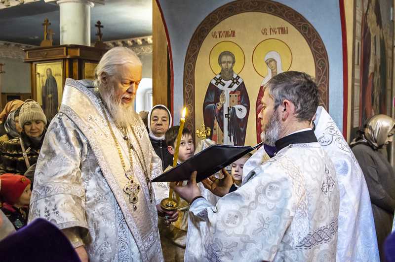 Такое Богослужение явление нечастое в обычных приходских храмах. Приезд епископа в храм значит, что есть повод для совершения особой службы. Таким поводом и стал день памяти Архангела Михаила.